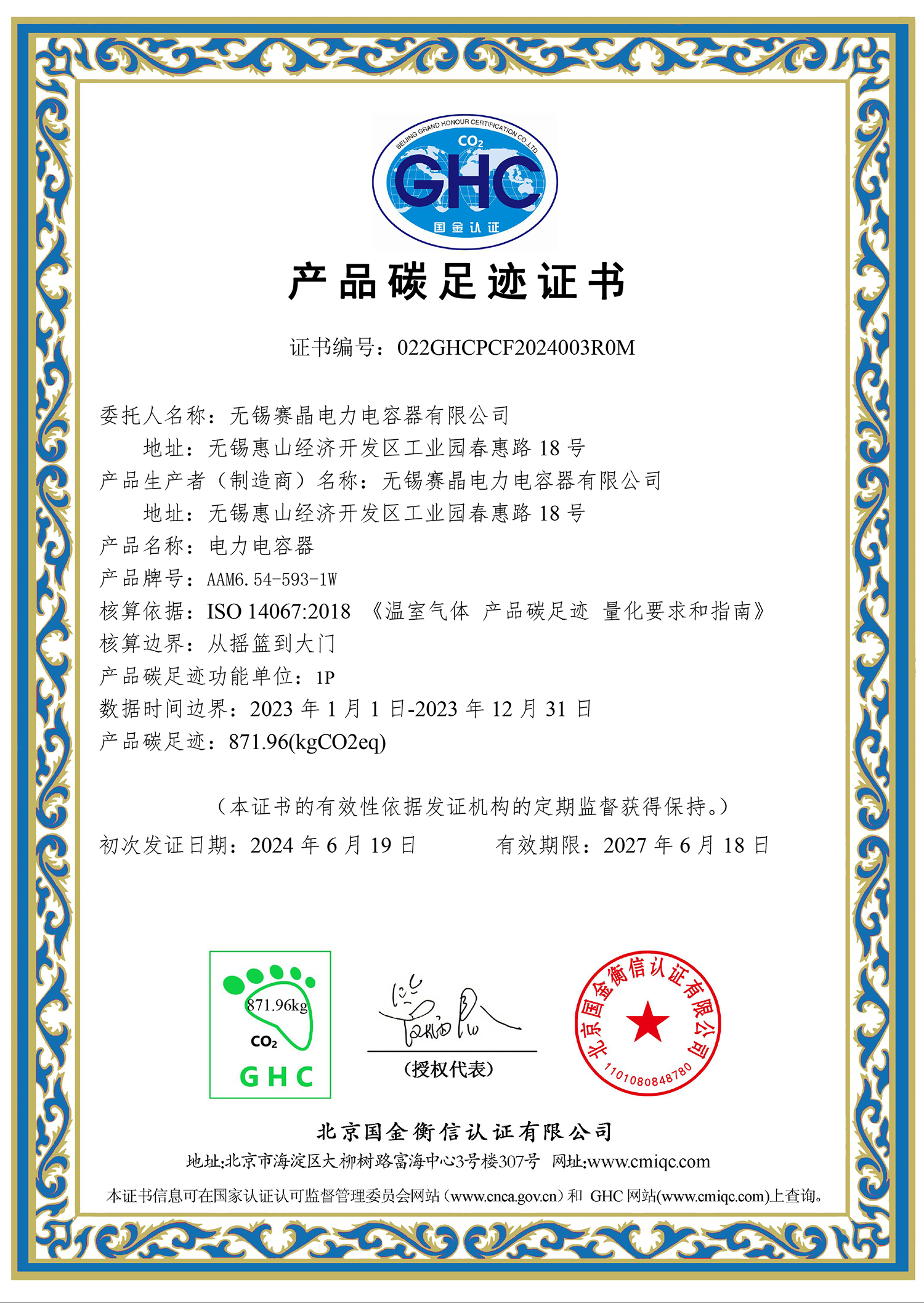 低碳转型,责任担当:无锡赛晶足迹认证成果展示