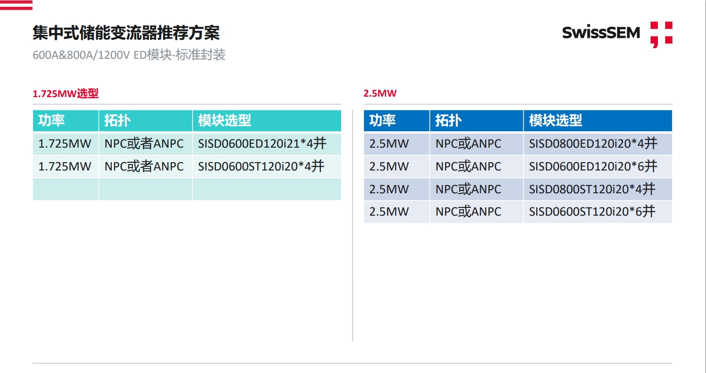 随后重点阐述了赛晶产品在储能变流器中解决方案。针对目前市场上的大功率组串变流器、集中式储能变流器和高压级联储能变流器,赛晶都有相应产品可供选用。同时,赛晶还针对市场的发展,会开发新型封装的功率模块,为客户提供更佳的选择。