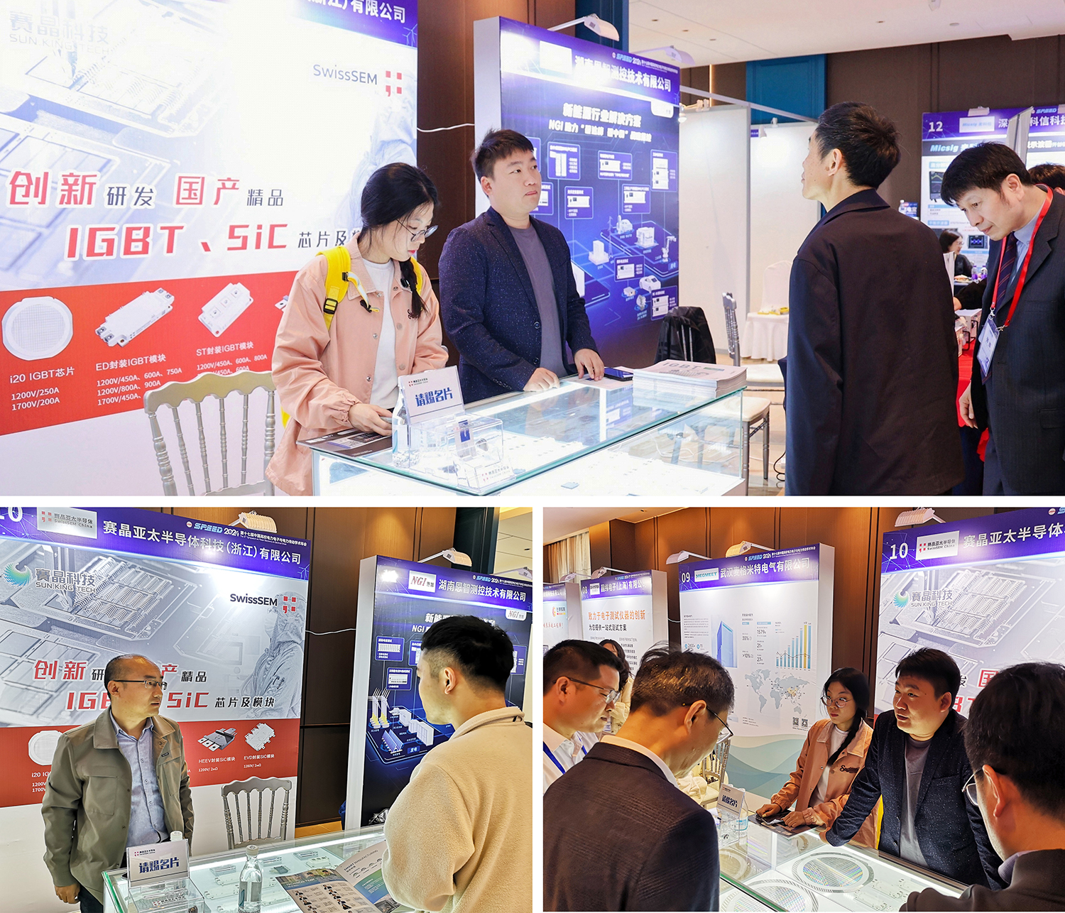 展览中,赛晶半导体自主研发IGBT、SiC芯片及模块引发众多专家学者、高校师生热烈关注和深入交流,并受到了与会技术专家和客户的高度关注和热烈反响。