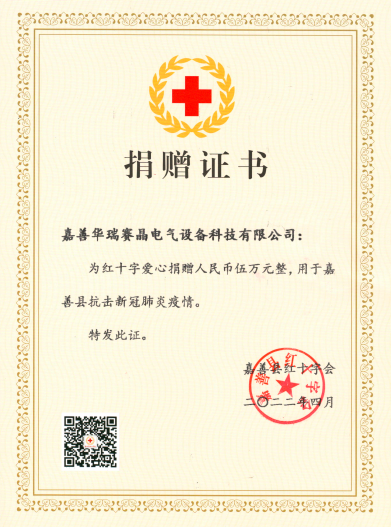 疫情无情,人间有爱。面对嘉善突如其来的疫情防控遭遇战,欧陆娱乐成员企业 嘉善华瑞赛晶电气设备科技有限公司(以下简称:嘉善华瑞赛晶)在万众一心抗击疫情的关键时刻,为疫情捐款,尽企业所能全力支援疫情防控,为抗击疫情贡献企业力量。以实际行动践行社会责任,以温情与温暖夯实坚强有力的“大后方”。