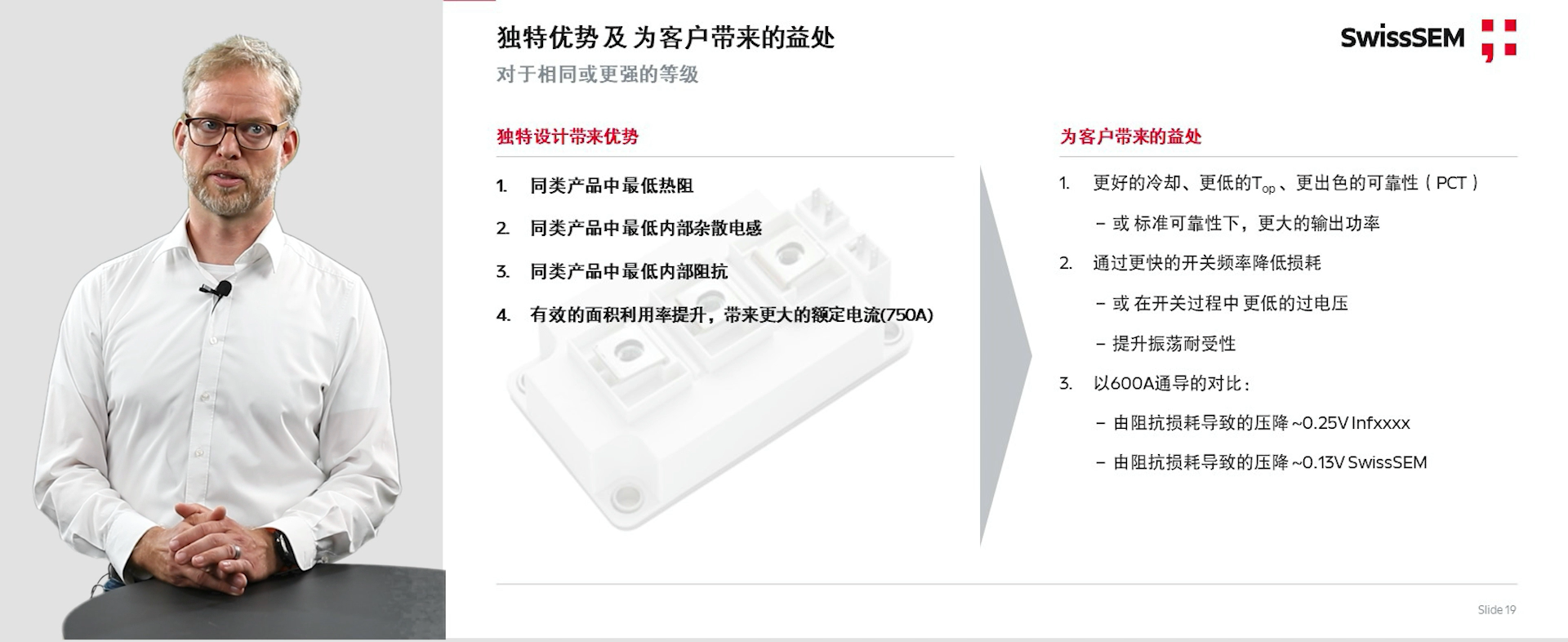 论坛上,欧陆娱乐瑞士子公司SwissSEM首席运营官Sven先生,通过视频的方式发表主题报告“工业级和车规级IGBT的创新与突破”。介绍了赛晶i20 IGBT芯片组、ED封装IGBT模块的优势及特点,并首次发布了面向新能源汽车领域的HEEV封装SiC模块,以及面向新能源发电和工业电控领域的ST封装模块。这是继ED封装IGBT模块之后的又一力作,也是赛晶在工业级与车规级IGBT领域的又一次创新与突破。