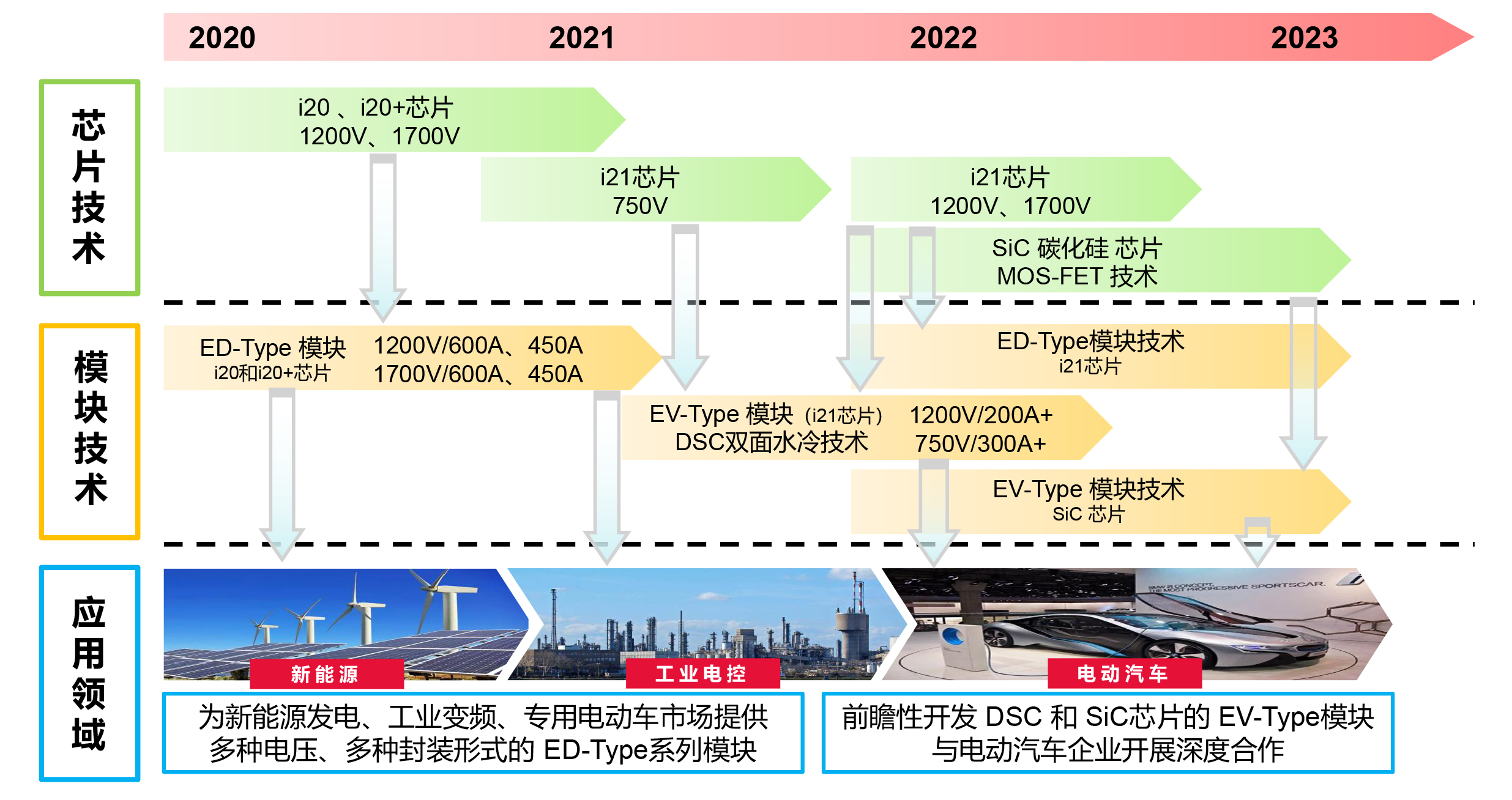 自二零一九年IGBT研发和产业化项目正式启动以来,各项工作顺利推进。至2020年中期,已经完成了研发团队组建、芯片和模块技术路线论证、首款产品设计,以及自主IGBT生产基地动工等一系列工作。