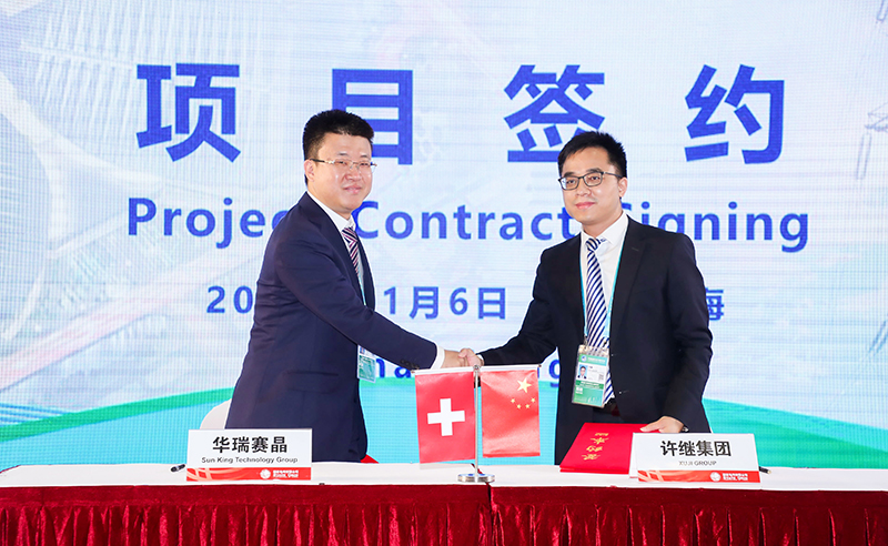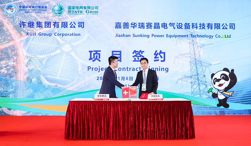 2020年11月6日,在上海举办的第三届中国国际进口博览会上,欧陆娱乐集团有限公司(简称“赛晶集团”)旗下子公司嘉善华瑞赛晶电气设备科技有限公司与许继集团有限公司(简称“许继集团”),签订了总金额1亿元用于柔性直流输电领域IGBT的合作意向书,共建双方互利共赢的合作伙伴关系。