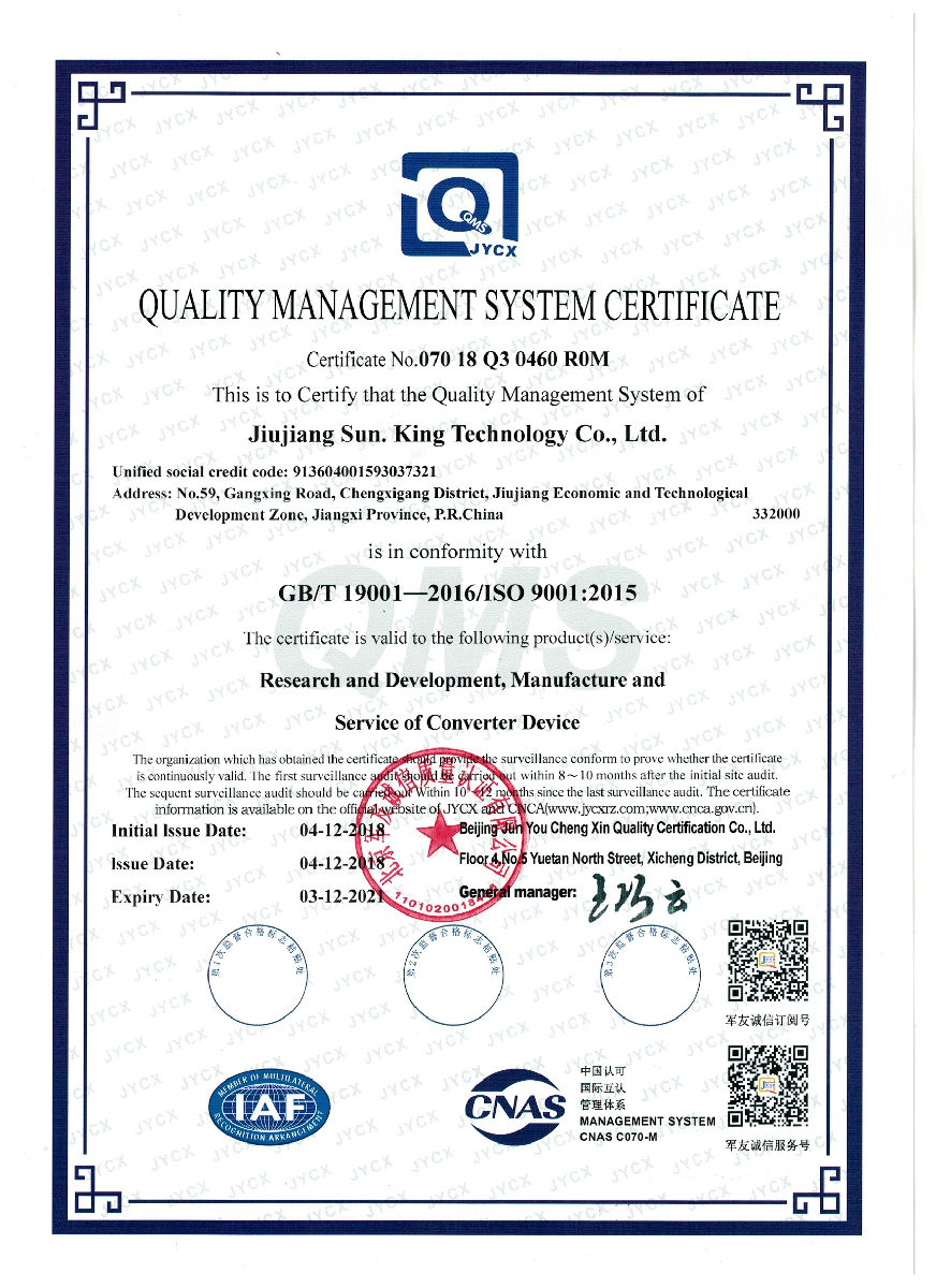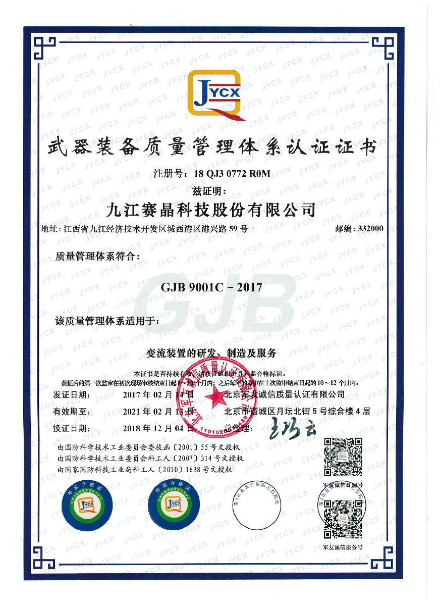 2018年12月4日,九江欧陆娱乐股份有限公司(以下简称九江赛晶)顺利获得军标和民标双体系质量管理体系证书。