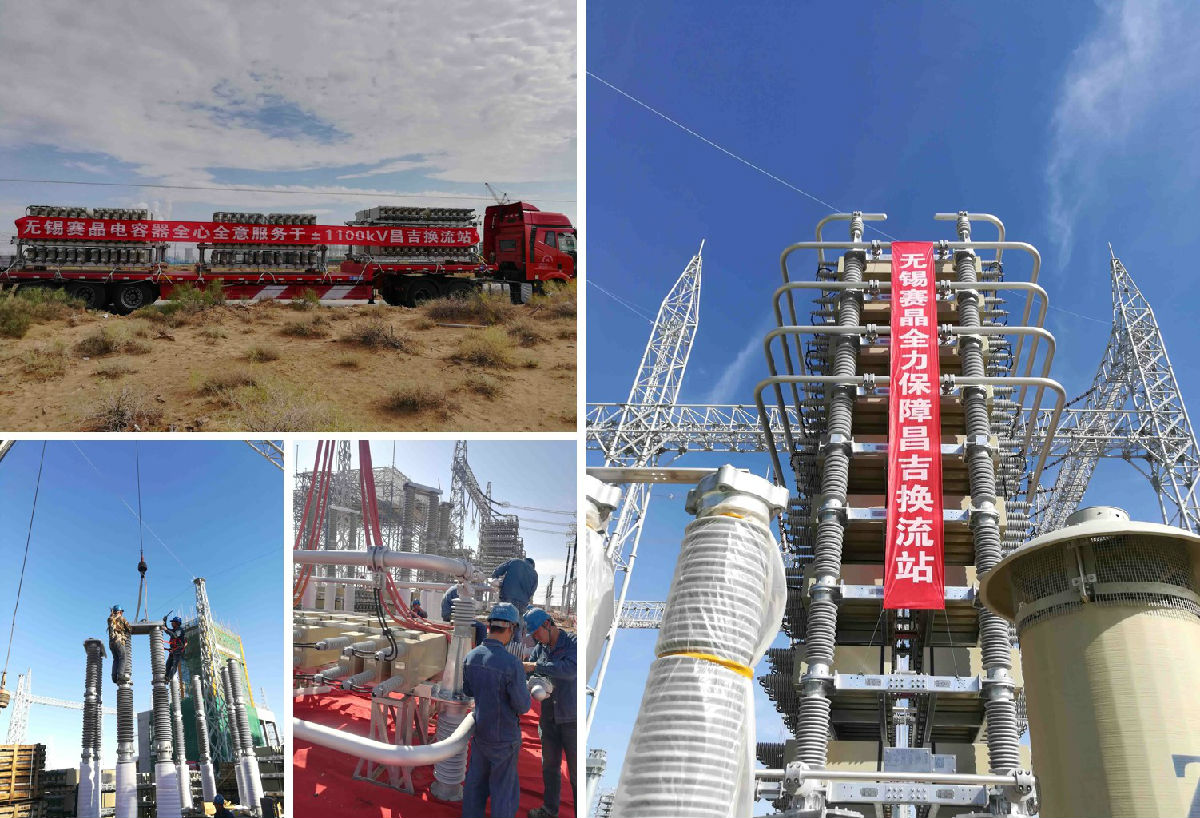 2017年10月10日,赛晶集团下属子公司无锡赛晶电力电容器有限公司(以下简称无锡赛晶)中标的特高压直流输电±1100kV昌吉换流站项目滤波器组电容器顺利安装完成。