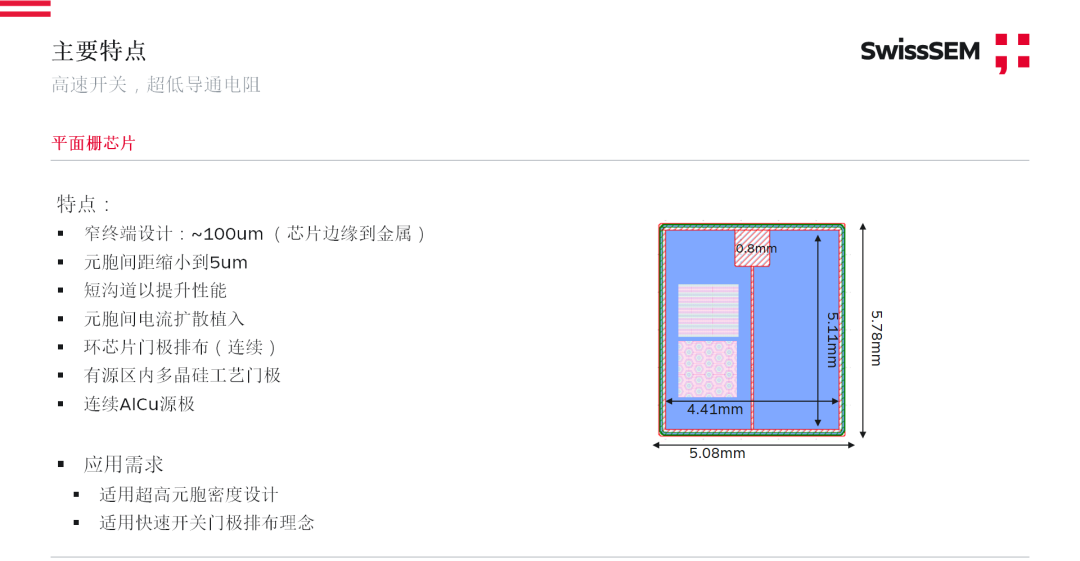 赛晶SiC MOSFET芯片,采用多项行业领先的特色设计和工艺,具有高速开关、超低导通电阻,以及高可靠性和良好的温度特性。
