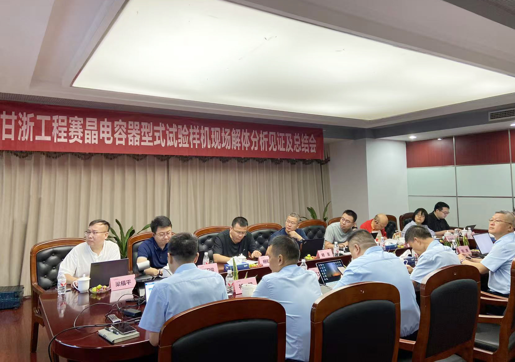 2025 年 9 月 25 日,±800kV甘浙特高压柔性直流输电工程(简称甘浙工程)赛晶电容器型式试验样机解体分析见证及总结会在嘉善赛晶电容器有限公司隆重召开。国网特高部、国网设备部、国网特高压公司、国网直流技术中心、国网甘肃公司、国网浙江公司,国网经研院(网联直流公司)、中国电科院、西安高压电器研究院、西安西电电力系统有限公司、中电普瑞电力工程有限公司等单位的领导和专家、特邀专家,赛晶公司领导,线上线下齐聚一堂,共同见证柔直工程装备国产化进程的重要时刻。