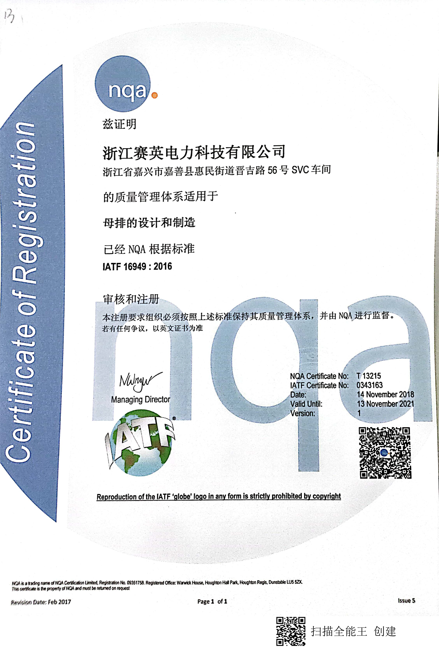 公司拥有先进的复合母排设计理念与制造工艺,同时瞄准国际上的行业技术发展趋势,不断提升产品的技术品质。公司已通过ISO14001、ISO9001、IATF16949 体系认证,拥有国际先进的复合母排自动化生产线与检测线,充分保证了复合母排产品的生产效率与质量。