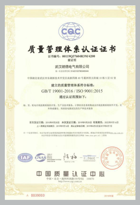 ● 2018年9月 通过GB/T 19001-2016/ISO 9001:2015质量体系认证